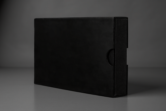 Упаковка подарочная с формованным ложементом. Размеры: 195*120*35 мм. В оформлении упаковки используется дизайнерская бумага, покрашенная в массе и ламинированная термоламинационной ультраматовой пленкой. Поверх ламинации нанесен логотип компании выборочным глянцевым лаком УФ утверждения. Внутренний короб оснащен формованным пластиковым черным ложементом, удерживающим вложение.