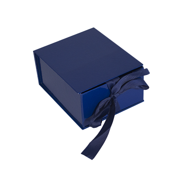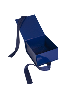 Подарочная коробка выполнена в виде книжки. Крышка коробки фиксируется репсовыми лентами