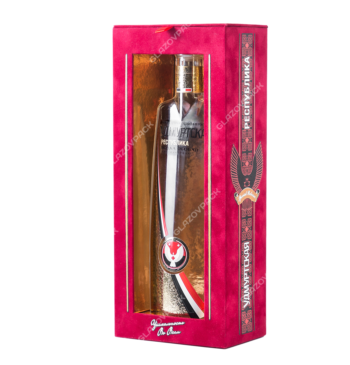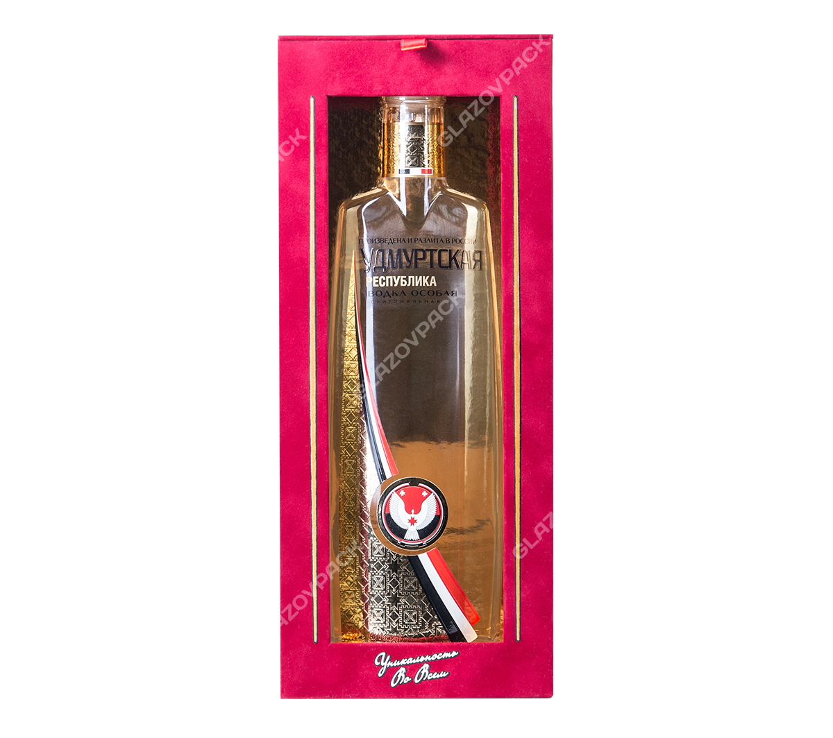 Подарочная бархатная коробка под бутылку "Удмуртская Республика"